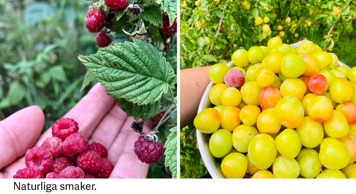 Några minuter från din dörr kan du njuta av naturens gåvor i form av bär och svamp, där de fuktiga prunkande gröna markerna gör svampen just extra frodig och god. Från midsommar till de första frostnätterna kan man ge sig ut på kantarelljakt. Skogssmultron och vilda hallon kantar grusvägarna och blåbärsrisen bidrar till hemmabakad paj.