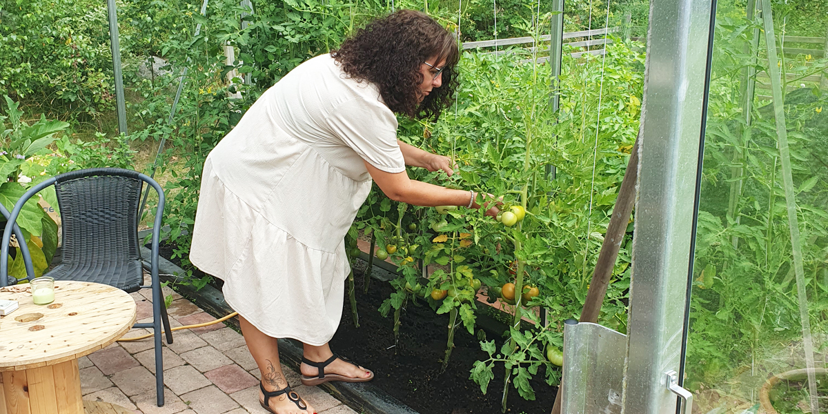 Efter en bomässa 2004 köpte Ola och Silvia inte bara en, utan tre mindre tomter och slog ihop dem till en stor tomt. Där byggde de precis det huset de ville ha, med ett ordentligt garage och förråd. Silvia älskar sitt stora växthus och hundarna älskar den stora gräsmattan som de springer runt på.