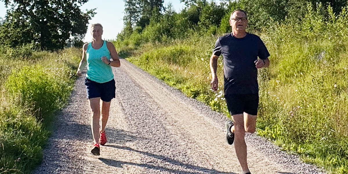 Vi har många sport- och träningsmöjligheter i Perstorp, flera olika gym, padelhall, simhall, bowlinghall, golfbana m.m. som vi båda nyttjar. Just nu är den roligaste träningen den som Aktiva ordnar i en av gymnastiksalarna. Och så har vi fantastiska skogar!’